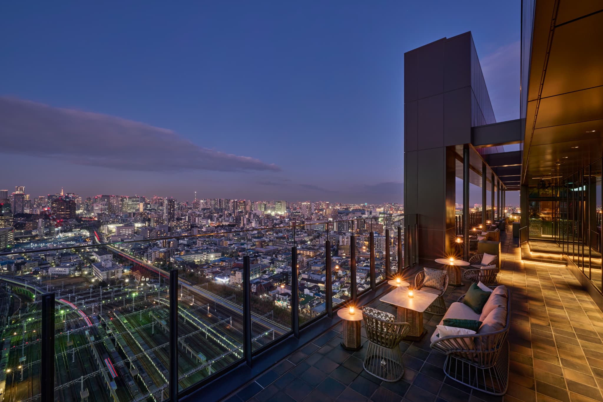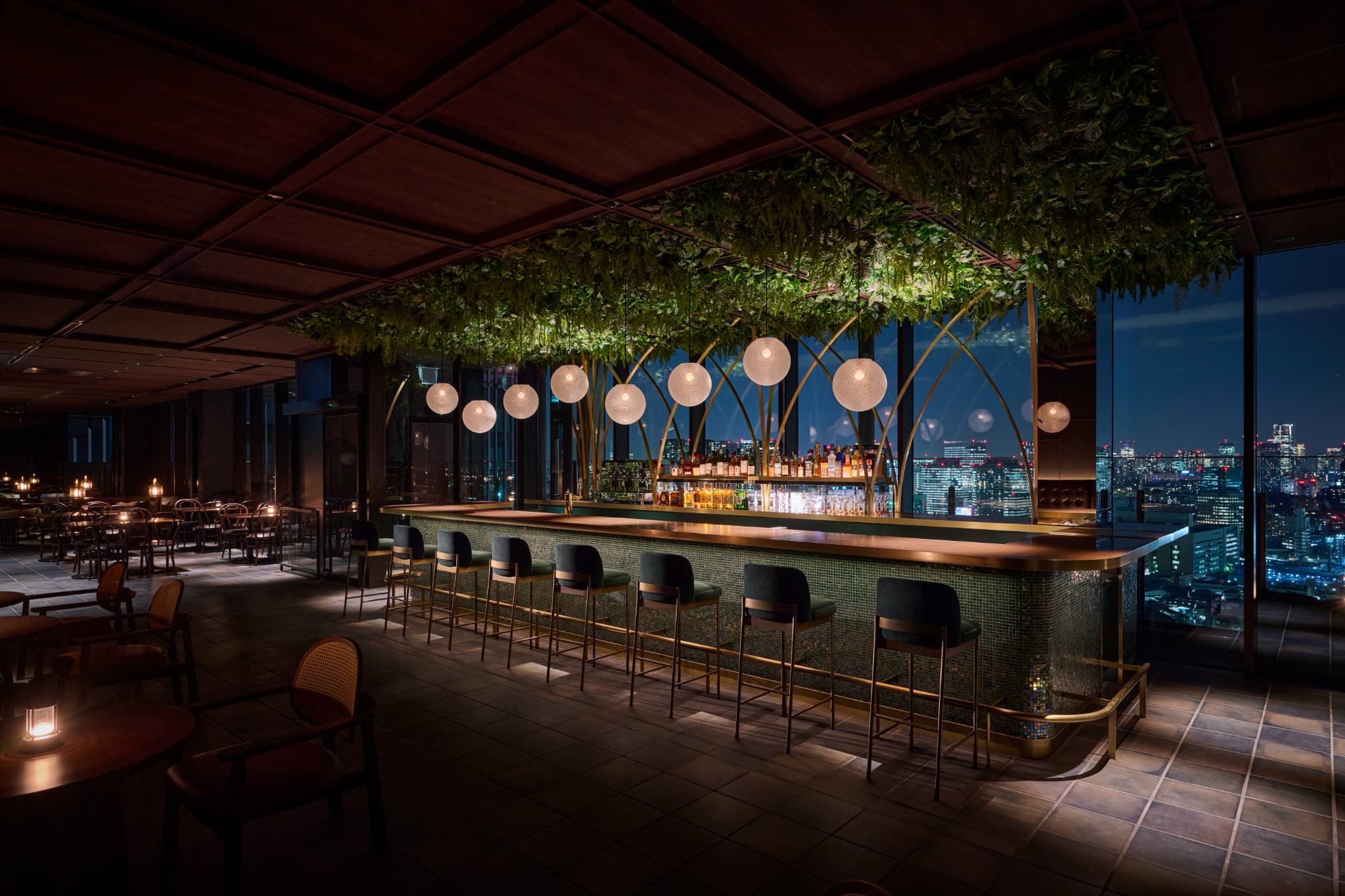 地上 100m、26 階に位置するルーフトップバー。