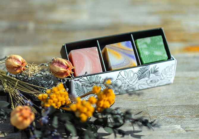 私たちの原点である、彩り豊かな「ボタニカルハンドメイド洗顔石鹸」をはじめ、美容液が溢れる「エッセンスハンドクリーム」、沖縄の海底泥を配合した「琉球のホワイトマリンクレイ洗顔石鹸」など沖縄の自然の恵みを活かした多様なアイテムを取り揃え、世界中の方々に喜んでいただけるような沖縄発世界ブランドを目指しています。