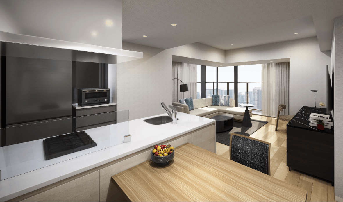 フルキッチンやランドリー設備を備えた客室と、OIMACHI TRACKS(大井町トラックス)の多彩な施設が、上質でスマートなライフスタイルを叶えます。