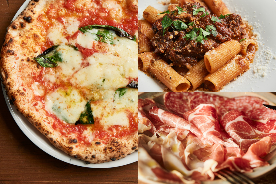 専門のピザ職人が特注石窯で焼き上げる本格ナポリピッツァは、小麦や薪の香りが際立つ逸品。