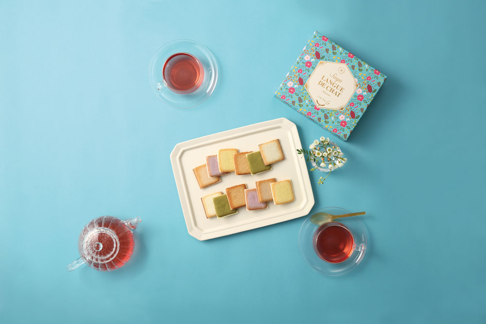 人気商品「サク ラング・ド・シャ」は、彩り豊かなラング・ド・シャに様々な味わいのチョコレートをサンド。